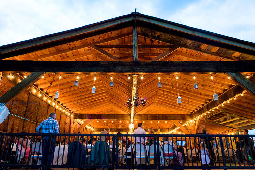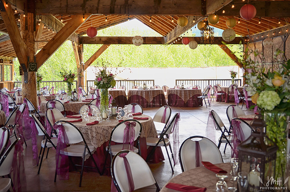Following the ceremony, your guests will enjoy a brief walk to the Pavilion Shelter House for a reception tailored to your vision. For a grand entrance, the bride and groom can arrive in a timeless draft horse-drawn carriage. The expansive 40′ x 60′ Shelter House exudes a sense of spacious romance, with its South-facing wall left open, providing a stunning backdrop of mountains and meadows.